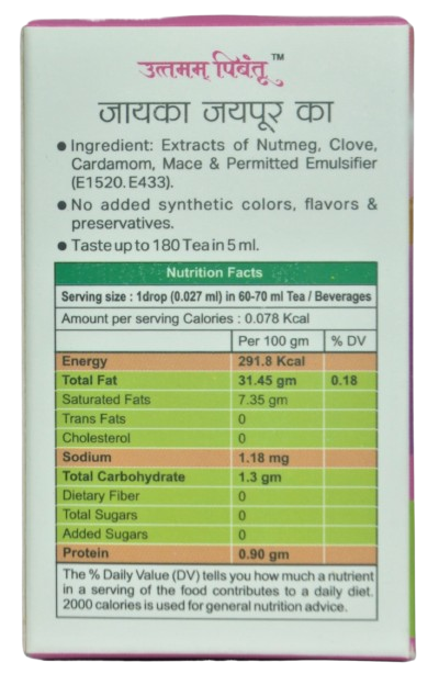 Capture the essence of Jaipur in every sip with Jayka Jaipurka, a delightful blend ofNutmeg, Cardamom, Clove and Mace extracts. Just one drop of this natural spice extractbrings a traditional, vibrant Read More